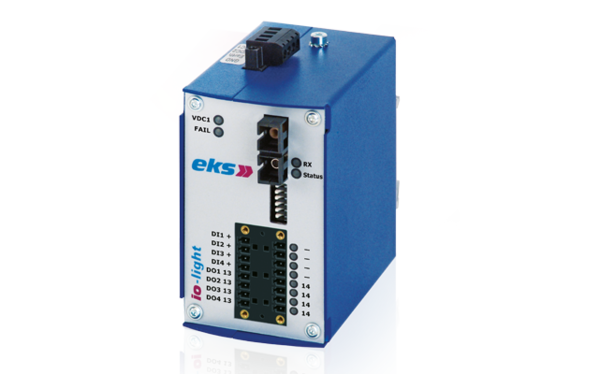 EKS IOL3100 Series is a fiber optic system which transmits digital signals (e.g., contact closures, control-signals (12–24 VDC) bi-directional via fiber optics.